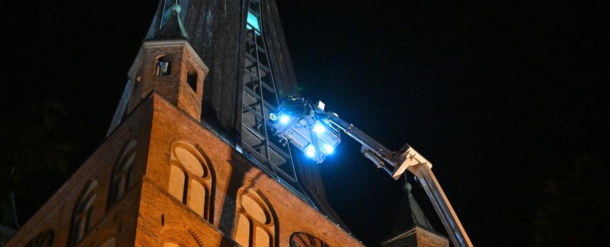 Nocna akcja strażaków w Szczecinie. Zgłoszono zadymienie 110-metrowej wieży